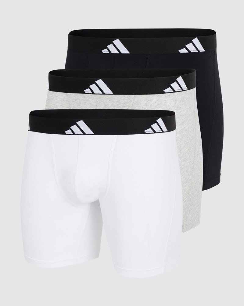 This Adidas Active Flex Cotton boxer brief underwear is created from a soft, stretchy cotton that wicks moisture to keep you feeling fresh. It features a tonal heat seal logo and logo waistband for effortless style. The no-chafe construction, 4-way stretch and contoured pouch provide the ultimate comfort all day long.