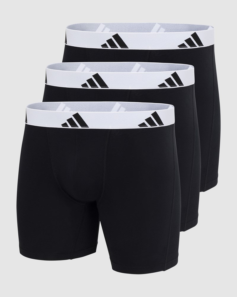 This Adidas Active Flex Cotton boxer brief underwear is created from a soft, stretchy cotton that wicks moisture to keep you feeling fresh. It features a tonal heat seal logo and logo waistband for effortless style. The no-chafe construction, 4-way stretch and contoured pouch provide the ultimate comfort all day long.