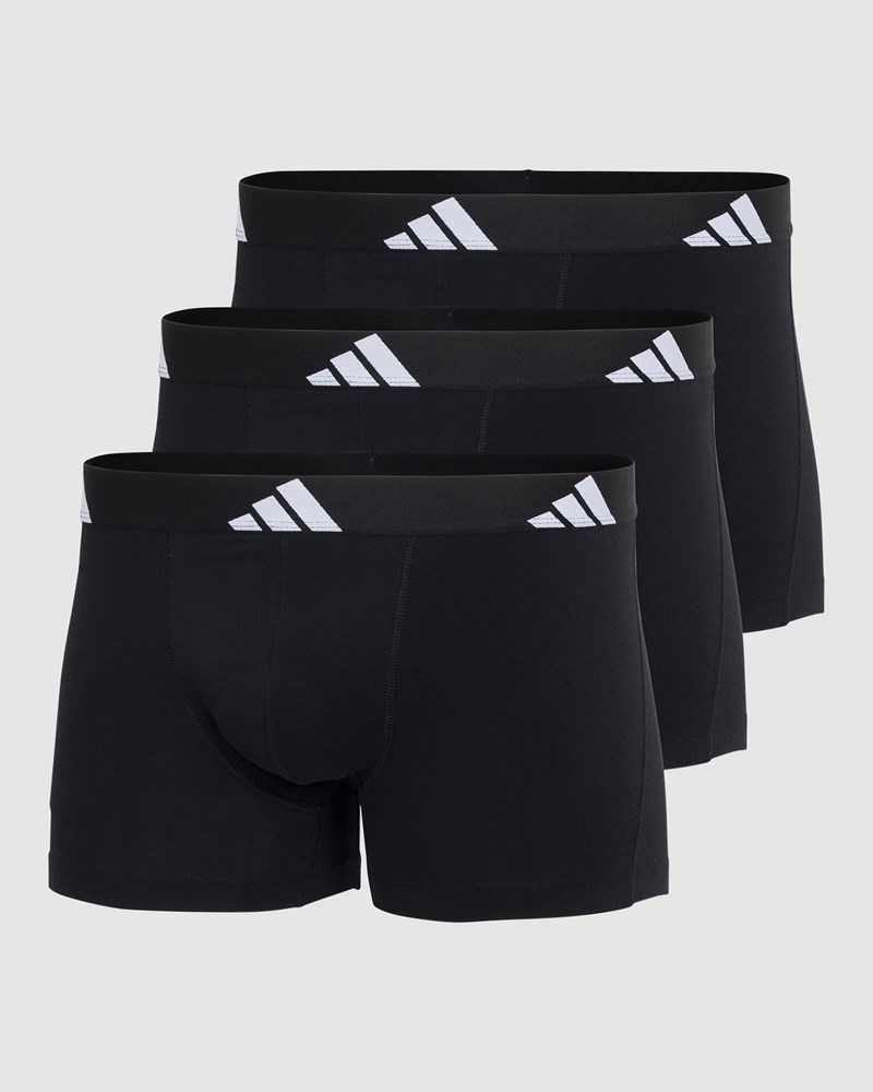 This Adidas Active Flex Cotton trunk underwear is created from a soft, stretchy cotton that wicks moisture to keep you feeling fresh. It features a tonal heat seal logo and logo waistband for effortless style. The no-chafe construction, 4-way stretch and contoured pouch provide the ultimate comfort all day long.