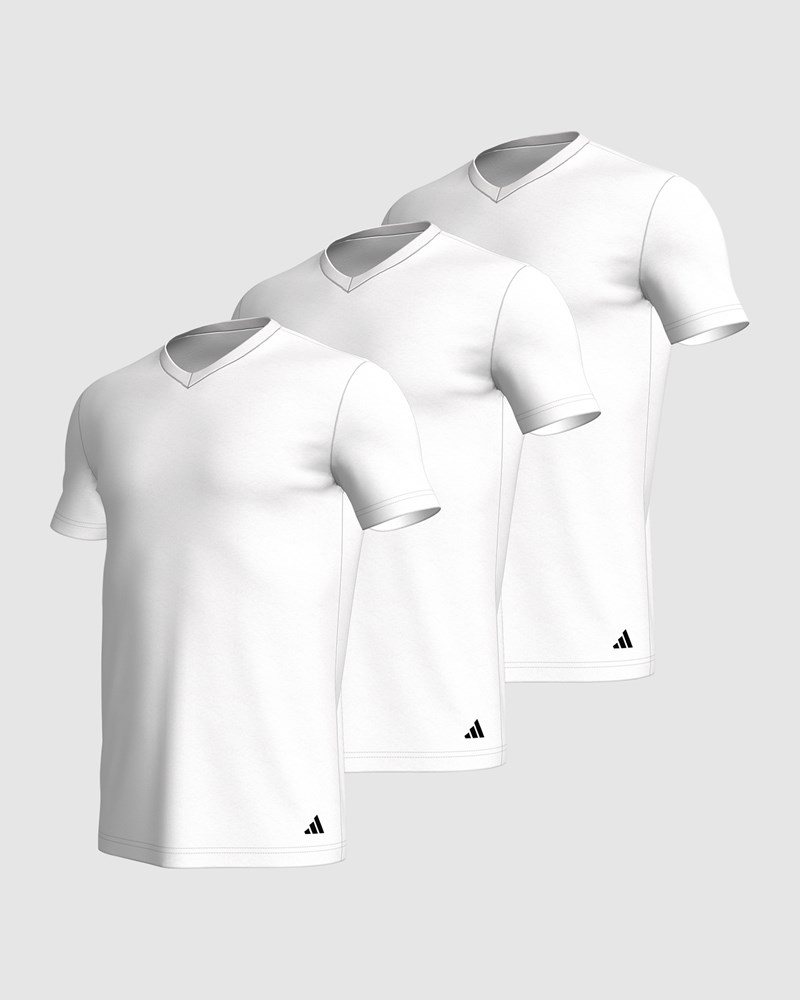 ADIDAS Mens 3 Pack Active Core Cotton V-Neck T-Shirt White