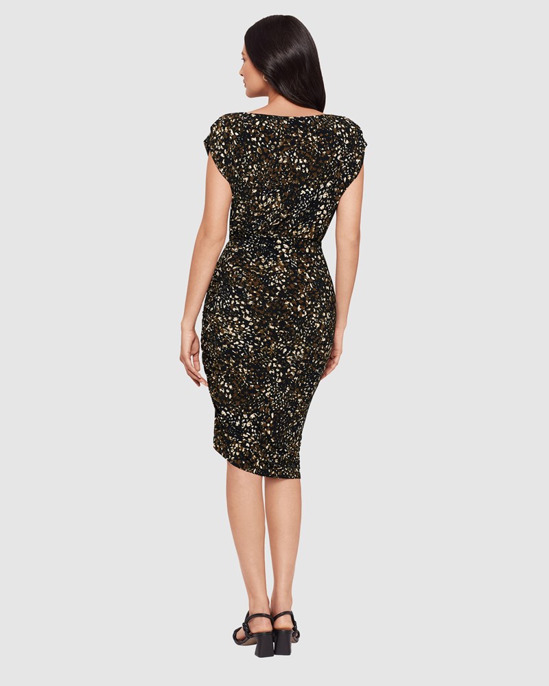 Elegant and sculpted, this softly-draped shapewear dress has a relaxed, blouse-style top section with cap sleeves which flows into a fitted bodycon skirt on the lower half. MiraMatte Jersey 360° shaping fabric smooths and cinches from the waist down, and it's finished with figure-enhancing shirred details plus a side slit for ease of movement.