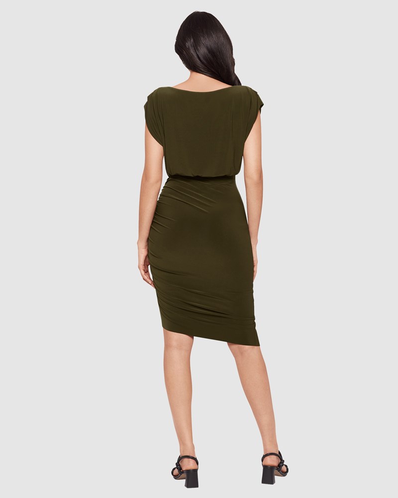 BODY BY MIRACLESUIT Bali Blouse Top Midi Shaping Dress in Nori