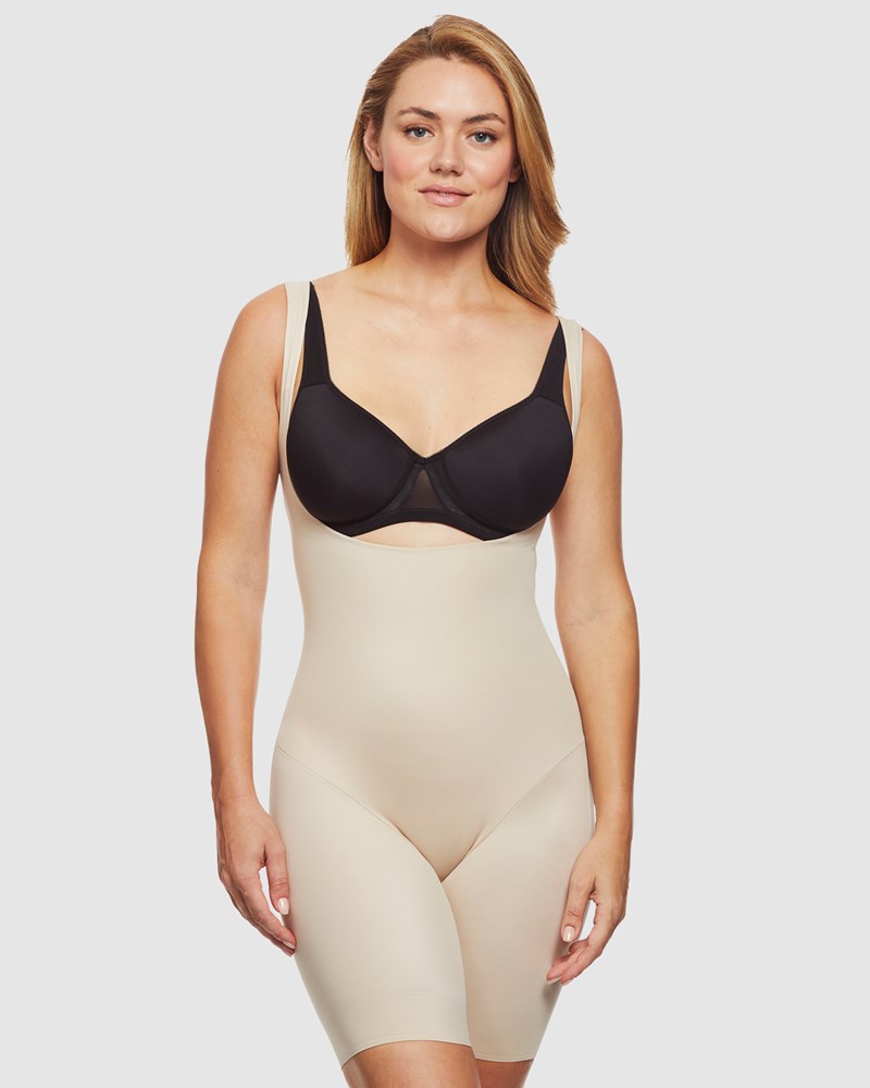 Total control, total comfort; this 'wear your own bra' shapewear piece delivers extra-firm control for your waist, midriff, hips and thighs, with patented Back Magic® (including flexible boning) to contour and support your back. Wonderful Edge® silicone trims ensure the leg openings won't roll up, and a convenient split gusset makes going to the bathroom easy.