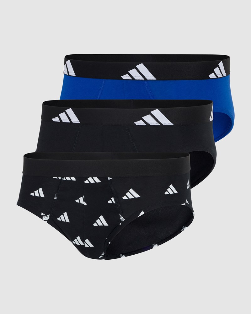 This 3 pack of Adidas Active Flex Cotton brief underwear is created from a soft, stretchy cotton that wicks moisture to keep you feeling fresh. It features a tonal heat seal logo and logo waistband for effortless style. The no-chafe construction, 4-way stretch and contoured pouch provide the ultimate comfort all day long.