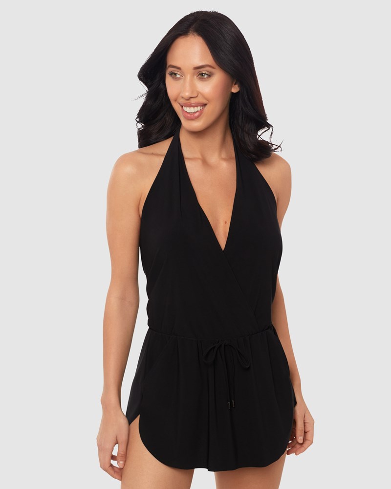 Chic, unique, and fabulously convenient thanks to the pockets, this stylish swim dress or skirted swimsuit is made with a slimming lining that provides tummy control and all-over smoothing. Built-in soft cups provide gentle support and shaping, and it has an elasticated drawstring waist tie with metal-capped ends to define your waistline.