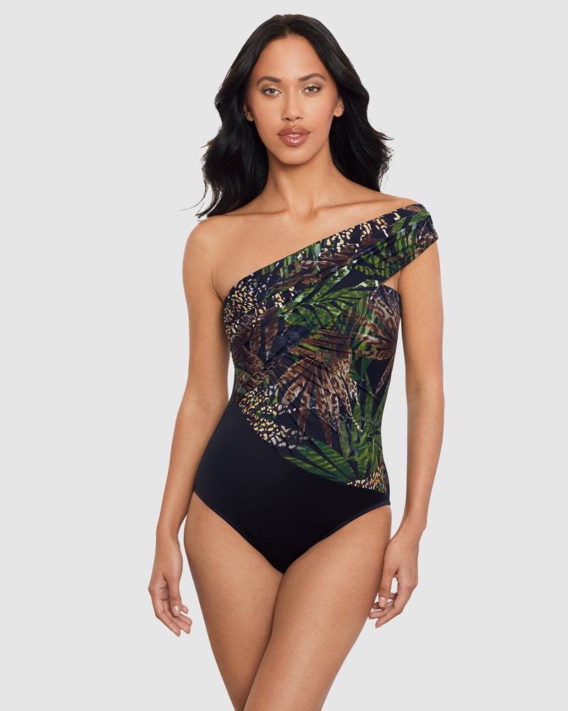 Turn the beach into your catwalk with this elegant one shoulder swimsuit, which can be converted into a strapless swimsuit thanks to the elasticated bandeau neckline. Made from Magitex® control fabric, it provides all-over slimming and smoothing, enhanced by the asymmetric layering and gathering that work together to create the illusion of a more hourglass-y figure. Hidden away inside are underwired cups (suitable for A-D cup sizes) which provide comfortable support and a lifted shape.