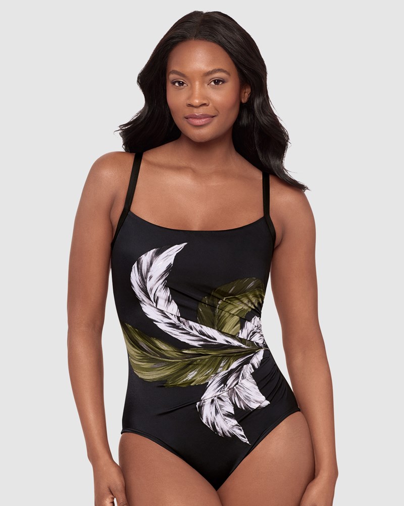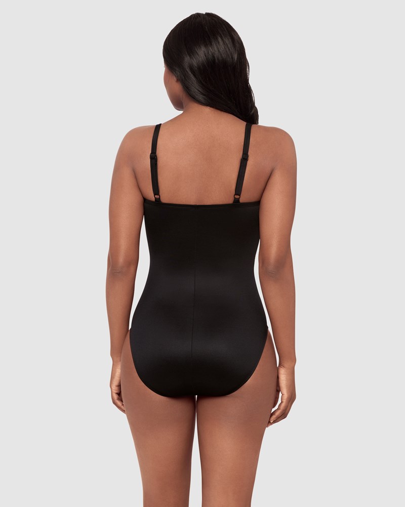 So much more than just a tummy control swimsuit, this shaping one piece in powerfully slimming Miratex fabric offers a minimalist design with maximum impact. Key features include a gentle scooped neckline, clever draping to define your waistline, and hidden underwire to support and shape your bust.