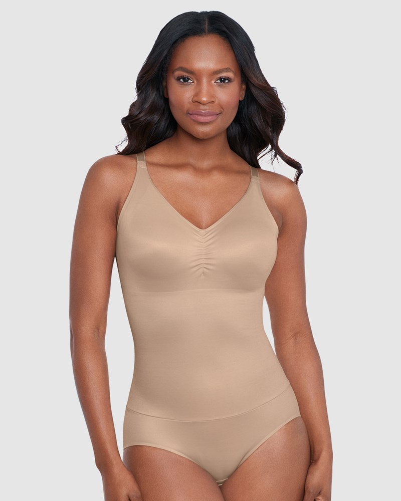 Get a sleeker look under clothing with this easy, all-in-one tummy control bodysuit. Padded, wirefree cups gently support and shape your bust, the single-ply bottom section ensures maximum comfort, and the firm control area in the middle creates a dramatically slimmer shape and perfect smoothness.