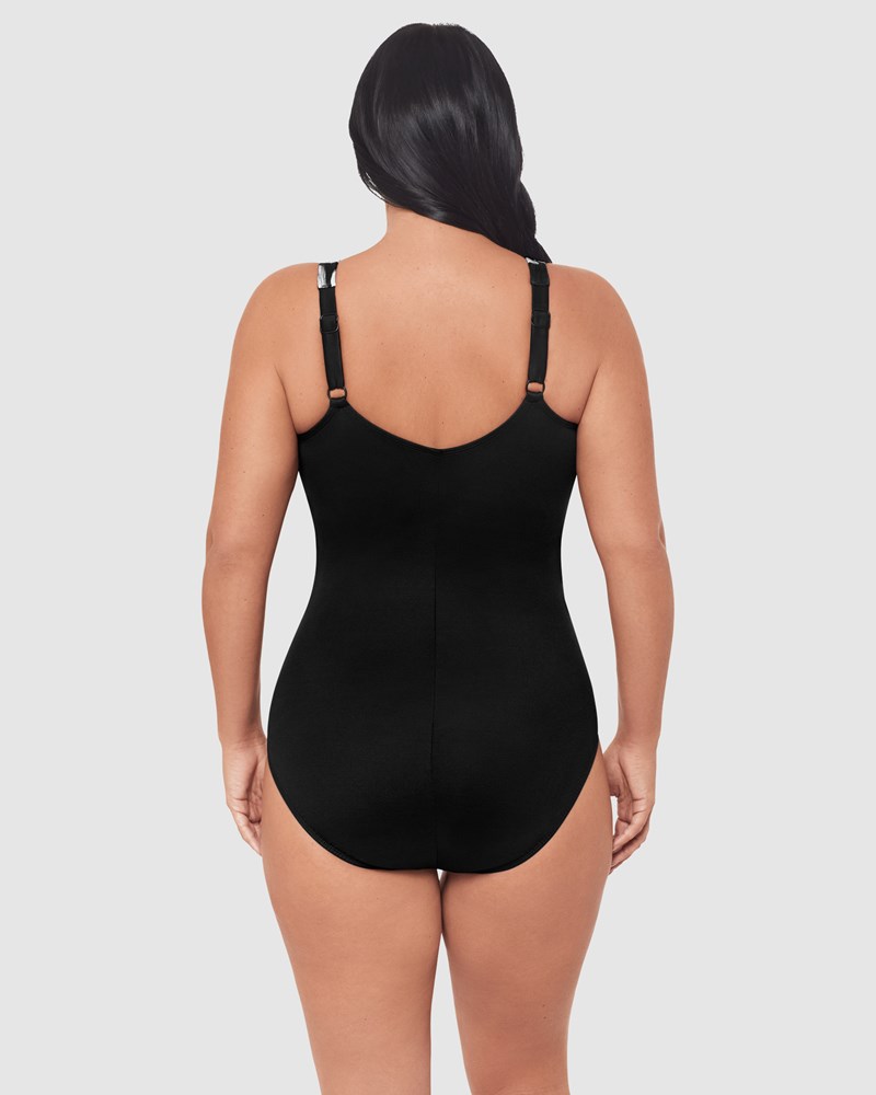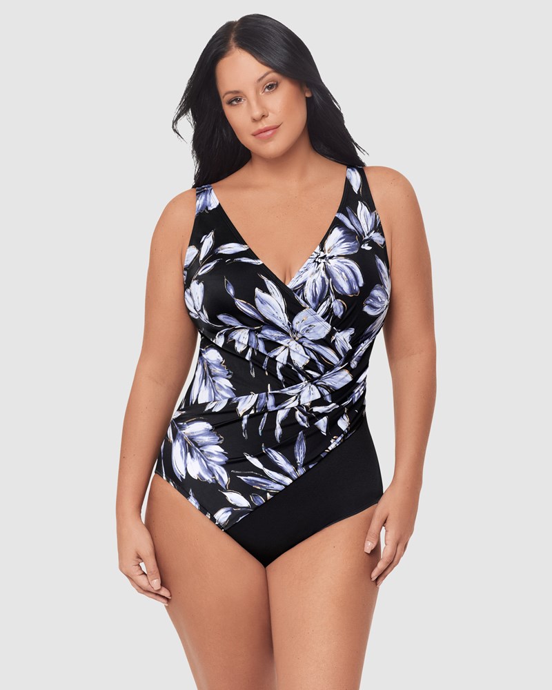 Look and feel incredible in this one piece swimsuit with built-in shaping, which has been designed especially to fit and flatter a fuller figure. The secret to this tummy control swimsuit is its advanced Miratex® fabric, which delivers 3x the shaping power of regular swimsuit fabric while feeling every bit as a lightweight and comfortable. It's a wirefree, V neck swimsuit with a wrapover design while helps to define your waistline.