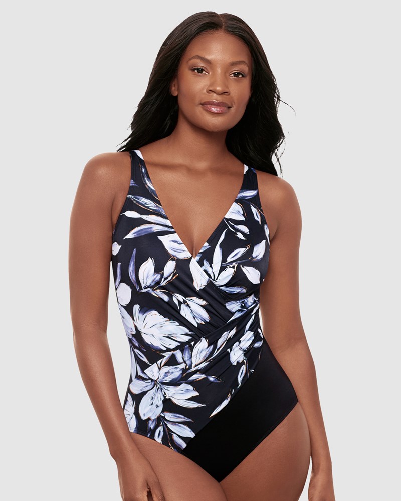 This classic, one-piece swimsuit with a crossover neckline is the perfect way to create a more hourglass-y silhouette. The wrapover front leads to subtle gathering at the side to emphasise your waistline, and this shaping swimsuit provides all-over smoothing and slimming thanks to Miraclesuit's lightweight-yet-powerful Miratex control fabric.