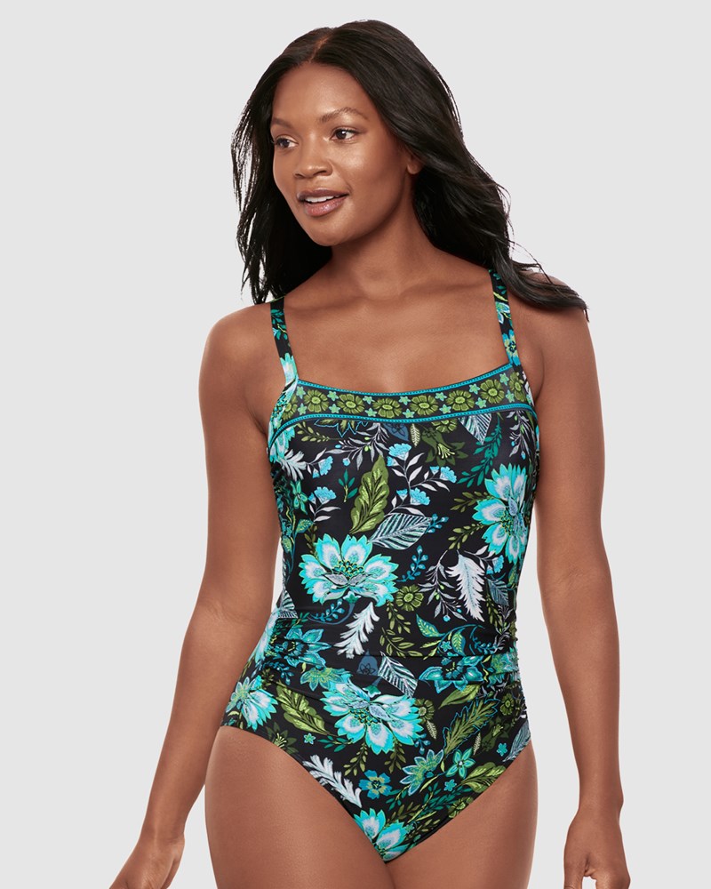 Sleek, minimal and incredibly figure flattering, this square neck swimsuit has hidden underwire support and adjustable straps for a flawless fit. The smoothing, sculpting effect comes from the signature Miratex fabric that delivers 3x the control of standard swimwear fabrics, while the waistline is gently shirred to further enhance your curves.