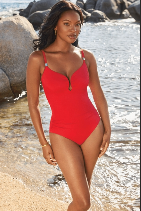 Sculpt curves like you've never had before with this stunning tummy control swimsuit, which features a dramatic plunge neckline with a U-wire to hold its shape, plus hidden underwire inside for lifting support. Shirring at the mid-section flatters your figure, while a stylish scoop back completes this women's one-piece swimsuit to perfection.