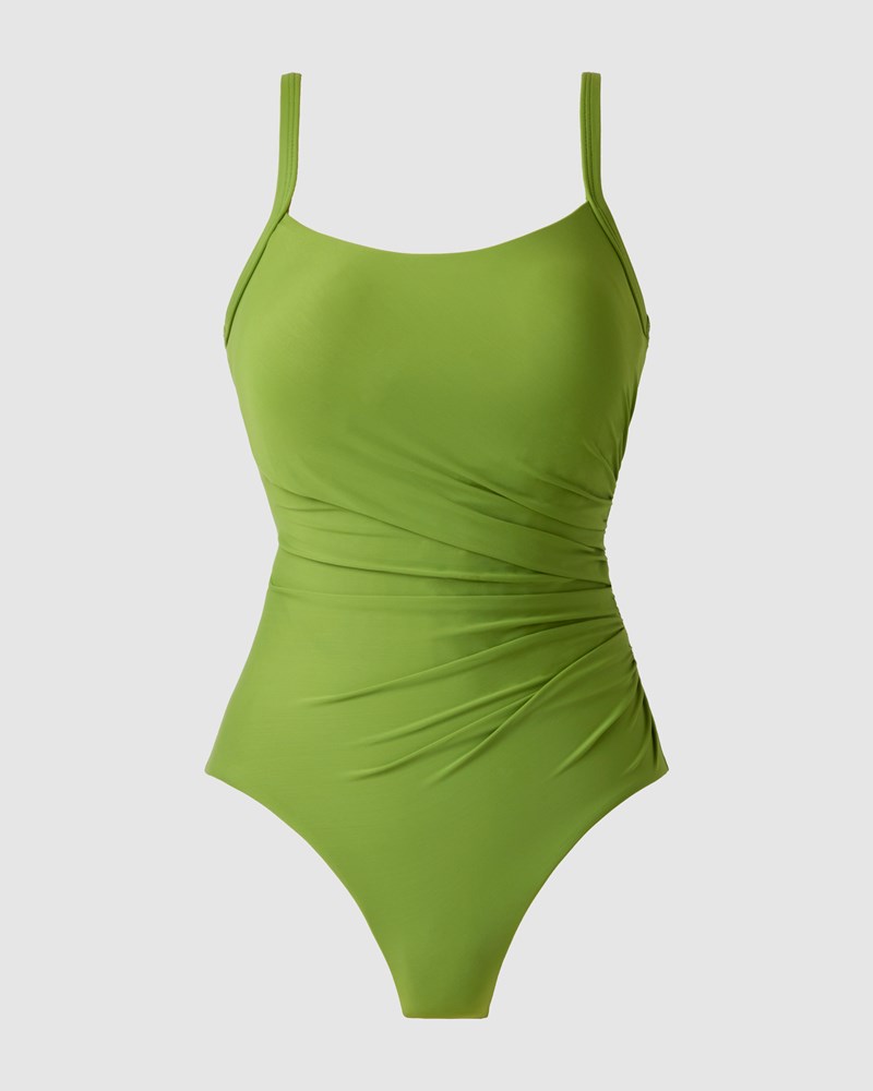 Cut a sleek and elegant figure in this minimalist shaping swimsuit, which features an extra high neckline at the front but still shows a flash of skin via the scooped back. The ruched swimsuit design subtly disguises any tummy worries, while the high-powered shapewear fabric takes inches off from every angle.