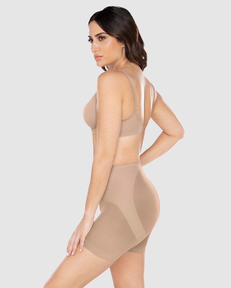 This waistline rear/buttocks lift shaper from MiracleSuit features sexy, sheer paneling that allows the garment to adjust to your body and create a perfect fit. The double panels provide the extra firm control and shaping you want, but also maintain a smooth look under your clothes. Choose this boy short to transform your tummy, backside, and upper thighs.