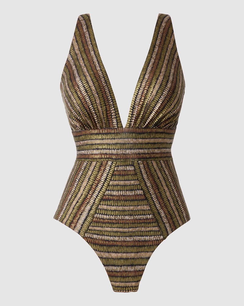 Discover a slimmer-yet-curvier new you with this stylish tummy control swimsuit, made from powerfully-shaping Miratex® fabric. The clever pattern placement beautifully defines your waistline, while the low plunge neckline adds a fabulous dash of cleavage into the mix.