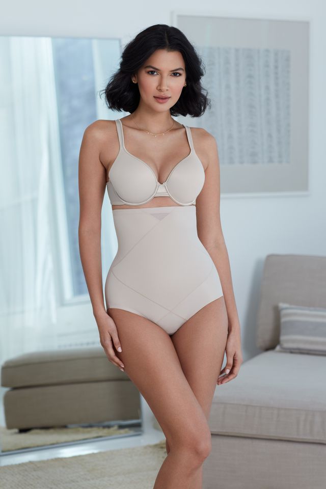 Say goodbye to tummy bulge with the Tummy Tuck High-Waist Shaping Brief by Miraclesuit, which has a triple shaping panel at the front to instantly smooth and flatten. The extra-high waistband also smooths away back fat, for a perfectly sleek line under your clothes.