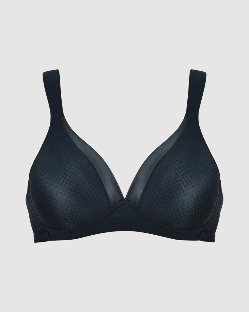 Created for everyday comfort and support with a side of style, this wirefree t-shirt bra has buttery-soft cups with a subtle geometric jacquard pattern and a satin trim along the neckline. Also featuring wide, padded straps for comfortable shoulders, it's the ultimate everyday bra.