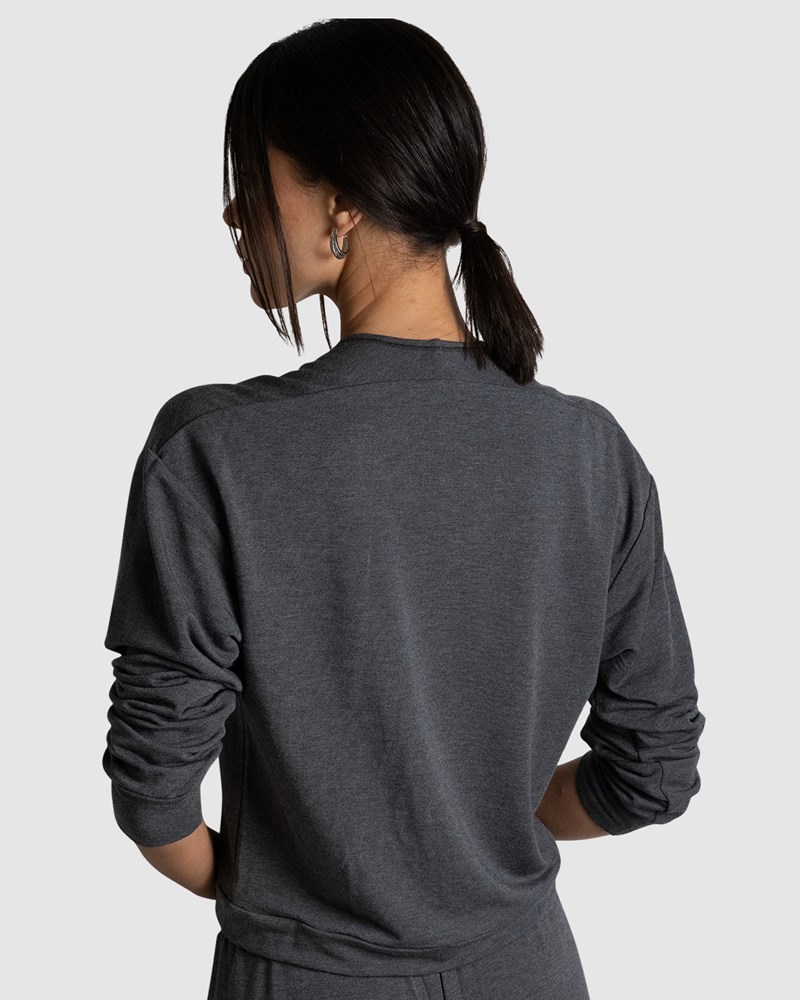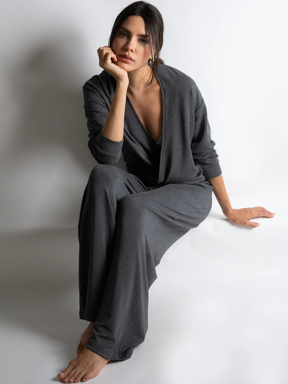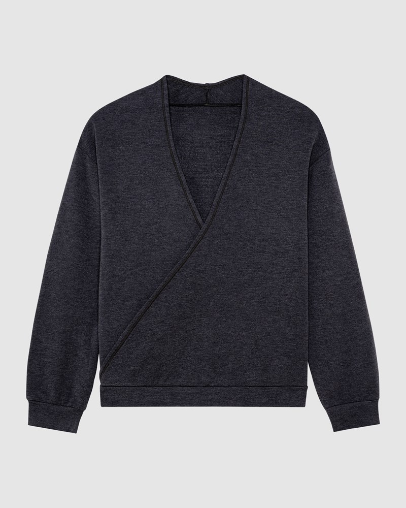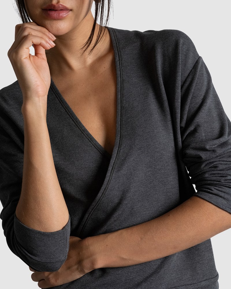 Cosy relaxation meets feminine styling in this soft, long-sleeve lounge top, made from ultra-soft modal fabric. The faux wrap design creates an open plunge neckline that looks great worn on its own or with lingerie.