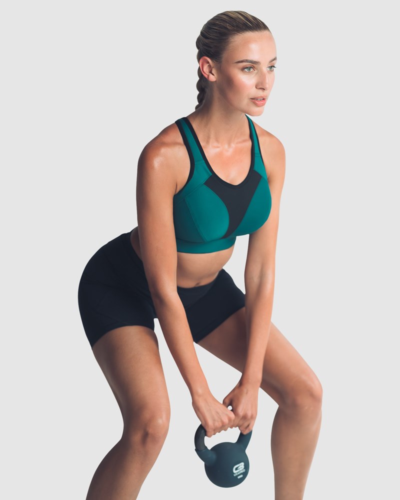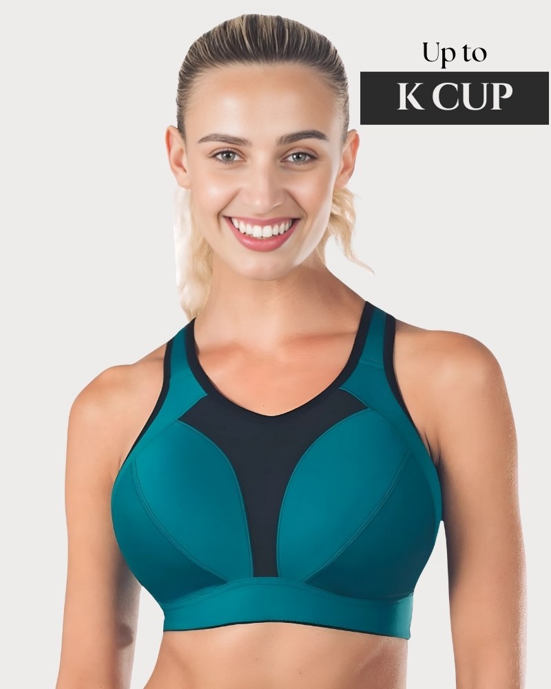 Whether you're running or kickboxing, you'll love the bounce-reducing effect of this high impact sports bra designed especially for large cup sizes. It's wirefree with internal side slings to minimise movement, and has a J hook on the straps to optionally convert it to a racerback sports bra for times you need an extra boost of support.