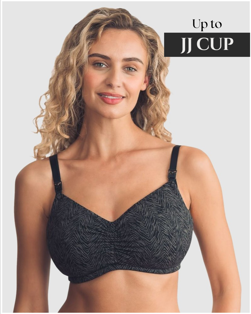 Your all-in-one maternity and nursing bra. This soft, comfy, wirefree nursing bra in a breathable cotton blend comes in flexi-fit sizing that adapts to your growing or fluctuating cup size, and has an innovative drawstring neckline that converts it from a crop top nursing bra (perfect for sleeping!) into a plunge nursing bra for V shaped necklines. Simply pull the cord to ruche the fabric, and tie with a bow to secure it in place.