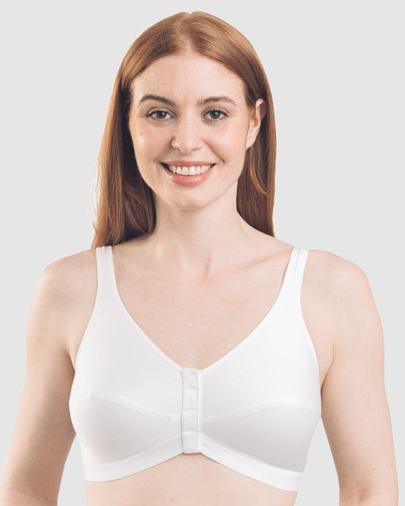 Royce Comfi Wirefree Press Stud Front Open Bra in Pima cotton B/C D/DD in bands 10-22 White
