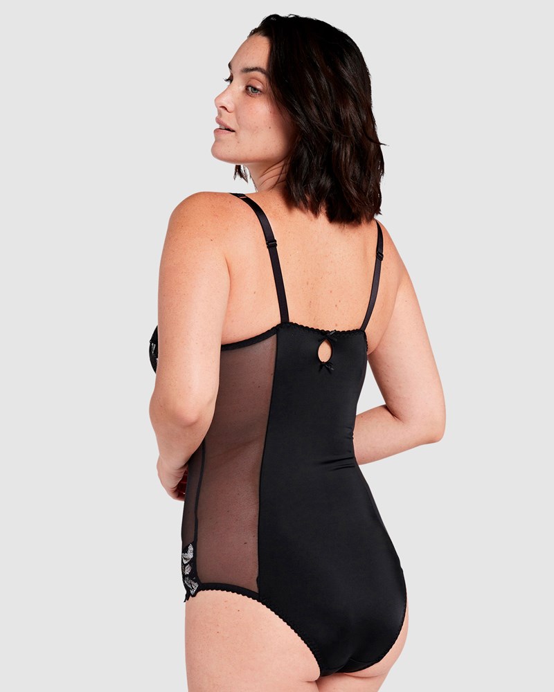 Get a sculpted, supported silhouette the elegant way with this lace and mesh lingerie bodysuit. Based on the brand's bestselling Arum bra, it's an underwired bodysuit with 3-part cups for lots of lift, with the collection's signature leafy-edged lace continuing down the center panel and around the hips. Mesh sides provide breathability throughout the warmer months and also offers a slimming look, while the back is made from super soft microfiber with a chic keyhole detail.
